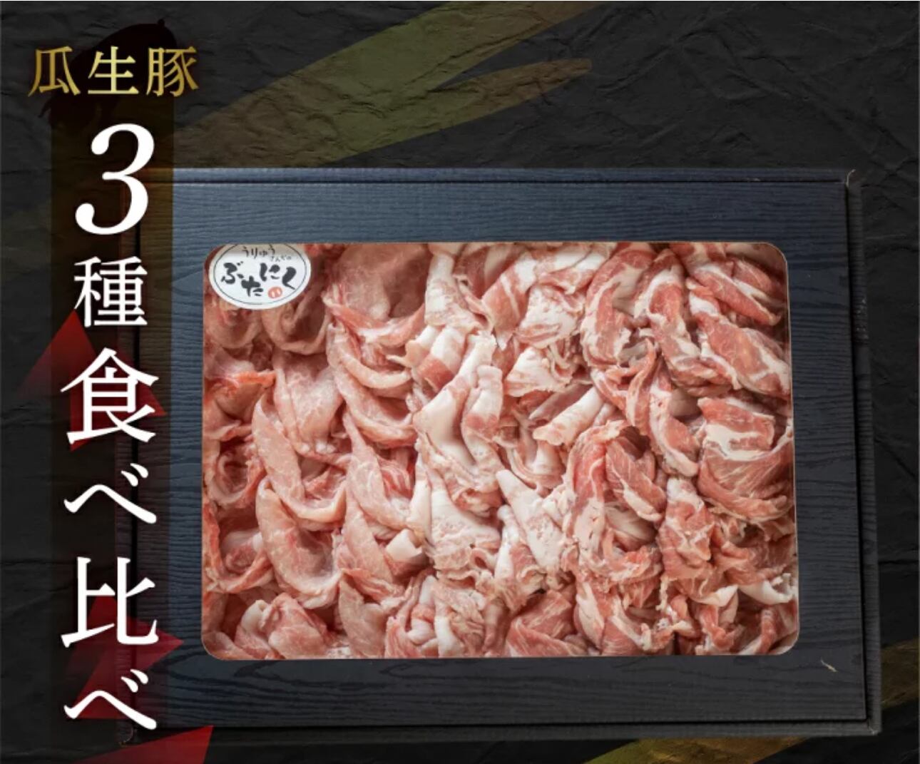 瓜生豚3種食べ比べ600g(ロース,バラ、肩ロース)